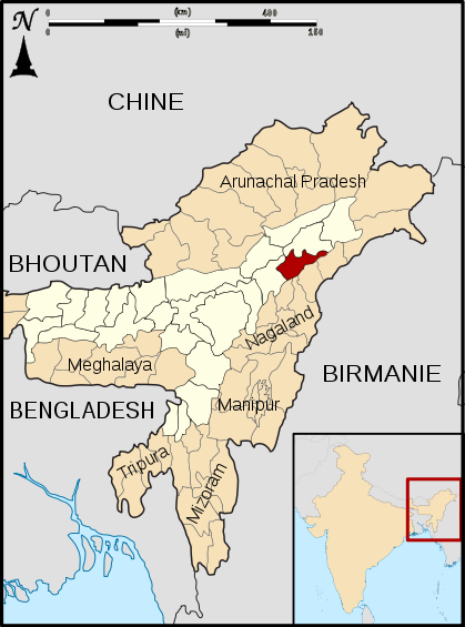 Sibsagar district, formerly known as Sivasagar, is one of the 32 districts of Assam state in Northeast India. Sivasagar town is the administrative headquarters of this district. This historic place is also known for its rich and diverse biodiversity.The districts cover an area of 2668 square kilometres as against total area of 78438 square kilometres of Assam as per census of 2001. The district comprises two sub-divisions – Sivasagar and Nazira. The district of Sivasagar lies between 26.45°N and 27.15°N latitudes and 94.25°E and 95.25°E longitudes. The district is bounded by the Brahmaputra River on the north, Nagaland on the south, the Charaideo district on the east and the Jhanji River on the west. The Sivasagar district has acquired its distinct identity due to the co-existence of different races, tribes, languages and cultures.
