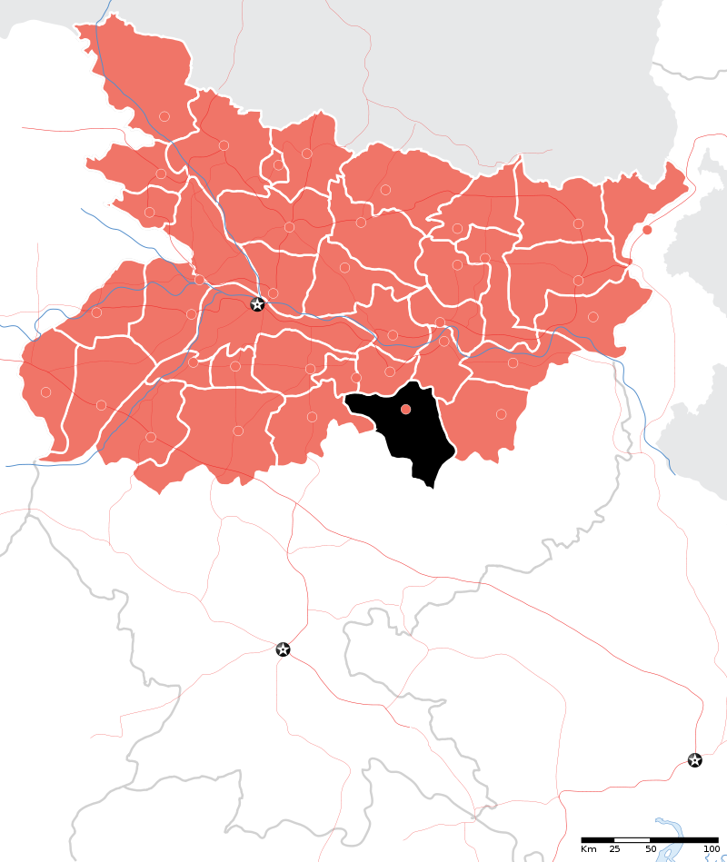 Jamui is one of the 38 districts of Bihar state, India. The district was formed on 21 February 1991, when it was separated from Munger district. It is located at a longitude of 86° 13'E and the latitude is 24° 55'N.