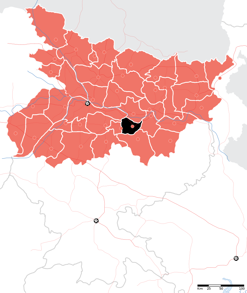 Lakhisarai district is one of the thirty-eight districts of Bihar state, India, and Lakhisarai town is the administrative headquarters of this district. Lakhisarai district is a part of Munger Division. The district occupies an area of 1228 km2. The district has a population of 8,01,173 (2001 census).
