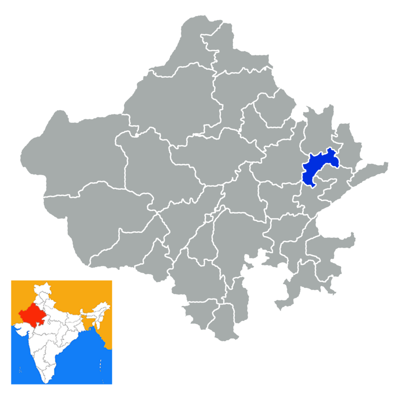 Dausa District is a district of Rajasthan state in western India. The city of Dausa is the district headquarters. It has a population of 16,34,409 an area of 3034 km², and a population density of 384 persons per km² with 62.75% literacy rate. It is bounded on the north by Alwar District, on the northeast by Bharatpur District, on the south-east by Karauli District, on the south by Sawai Madhopur District, and on the west by Jaipur District. The district is divided into Eight tehsils, Baswa, Dausa, Lalsot, Mahwa, Sikrai, Lawan, Nangal Rajawatan and Ramgarh Panchwara. The Sawa and Ban Ganga rivers run through the district. It is situated on National Highway no.11 From Jaipur to Agra. It is 55 km to the east of Jaipur.Mehandipur Balaji Mandir is a noted Hindu temple, Mandir in Dausa...