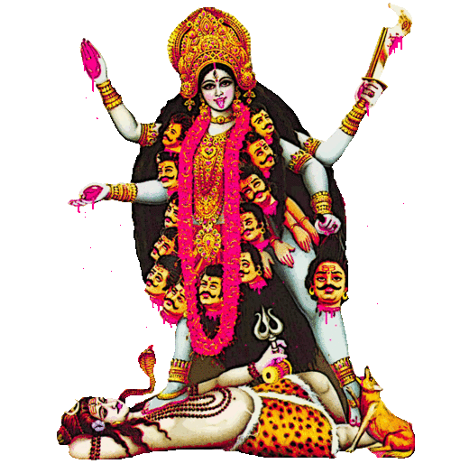 Kali is derived from the Sanskrit “Kali”, or time—she, therefore, represents Time, Change, Power, Creation, Preservation, and Destruction. “Kali” also mean “the black one”, the feminine noun of the Sanskrit adjective Kali. Kali’s earliest appearance is that of a destroyer principally of evil forces. She is worshipped by devotional movements and tantric sects variously as the Divine Mother, Mother of the Universe, Adi Shakti, or Adi Parashakti.